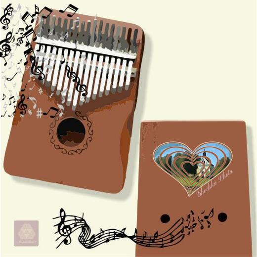 Ruční 17-tónové piano - původní africký nástroj Kalimba vyrobený z mahagonového dřeva. Záda s…