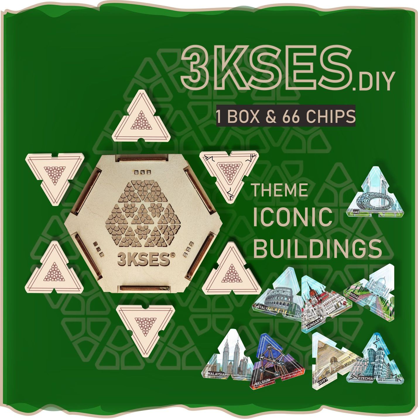 Všechny 3 hry ve hře Trikses mají jednoduchá pravidla. Hra používá oboustranné herní čipy trojúhelníkového tvaru s výřezy po stranách. S herními prvky se snadno manipuluje a použitý materiál, dřevo, je příjemné na dotek. Každý herní čip z 3KSES má, díky použitému přírodnímu materiálu, originální strukturu povrchu a je unikátní. Z jedné strany jsou herní čipy potištěné miniaturními malbami znázorňujícími světové architektonické skvosty, z druhé strany jsou ornamenty.
