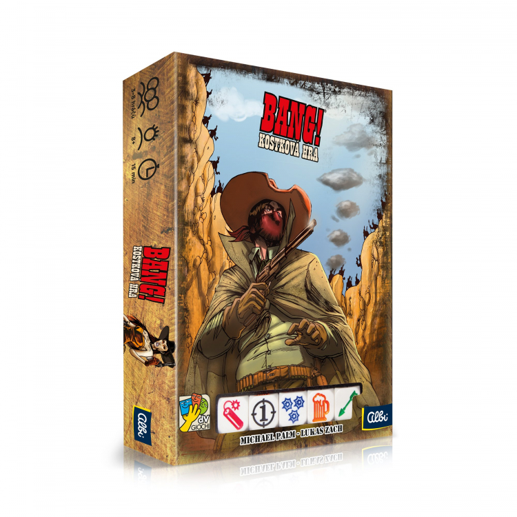 Hra kombinuje principy karetní hry BANG! s kostkovou hrou. Hra od ALBI pro 3-8 hráčů ve věku od 8 let.