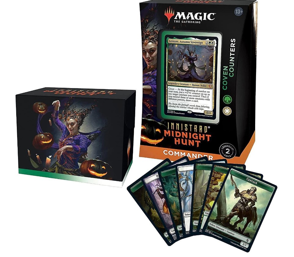 Coven Counters je balíček hracích karet Magic the Gathering z upíří ságy Innistrad Midnight Hunt s commander dámou Leinore. Odladěný balíček karet pro okamžitou MTG hru formátu Commander.  Pro sběratele může mít časem zabalený balíček nebo jeho karty velkou hodnotu.