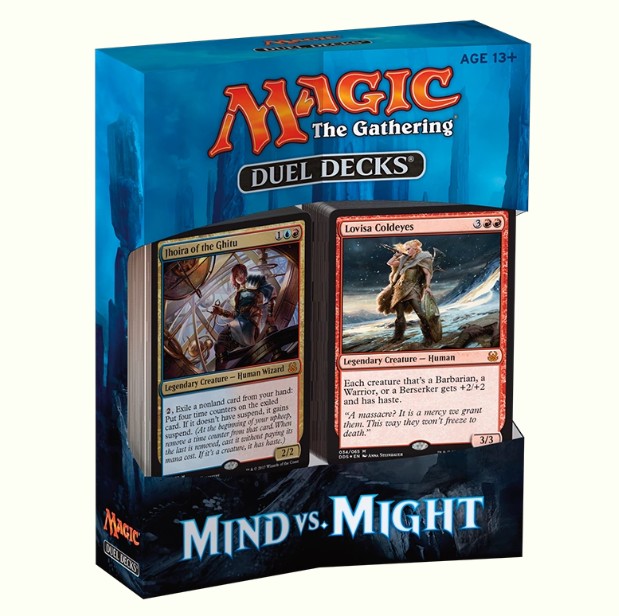Hra Magic: The Gathering Duel Deck - Mind vs Might. Rok 2017. Odladěný soubojový balíček pro hru 2 hráčů 60 karet deck (blue/red) + 60 karet deck (green). Originálně baleno, v angličtině.
