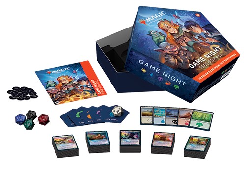 Party balíček karet pro okamžitou MTG soubojovou hru 5 hráčů. Party Deck je skvělý způsob jak zažít vzrušení a zábavu z karetní hry Magic: the Gathering. Se svými soupeři si budete proti sobě hrát jeden z 5 předpřipravených 60 karetních balíčků, které obsahují některé z nejlepších karet z celé historie Magicu. Celý set je vychytaný, Game Night balíček prošel četnými změnami až do této vytříbené verze z roku 2022. Balíčky jsou vyladěné k dokonalosti, 20stěnné počitadla životů a praktické úložiště na karty .