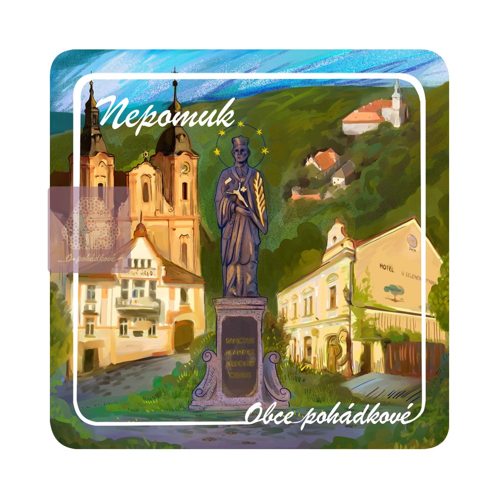Exkluzivní sada nápojových podtácků 93 mm x 93 mm. Tácky z edice Obce Pohádkové tvoří ucelenou a stále doplňovanou sbírku s ilustrovanými motivy obcí z Čech.