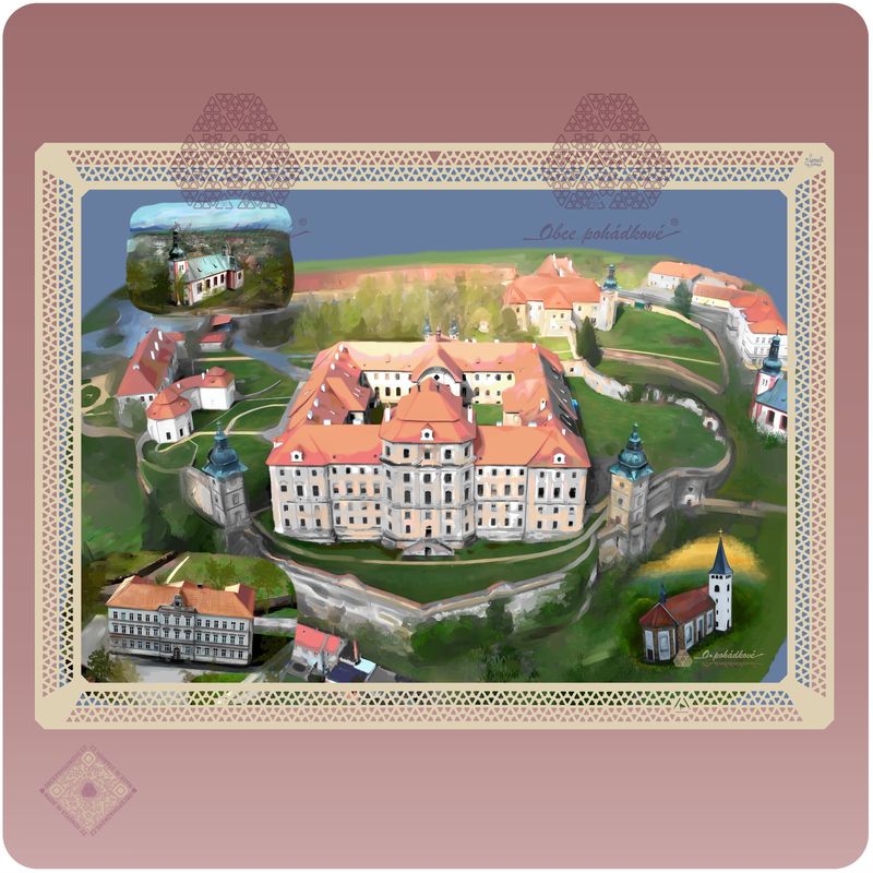 Originální malby z edice OBCE POHÁDKOVÉ® jsou ručně malované akvarely. Před vlastním namalováním byla pečlivě zpracována fotodokumentace malebným míst a objektů z ptačího pohledu. Z jednotlivých míst precizně poskládáná koláž pak vypovídá o útulnosti i krásách našich obcí.