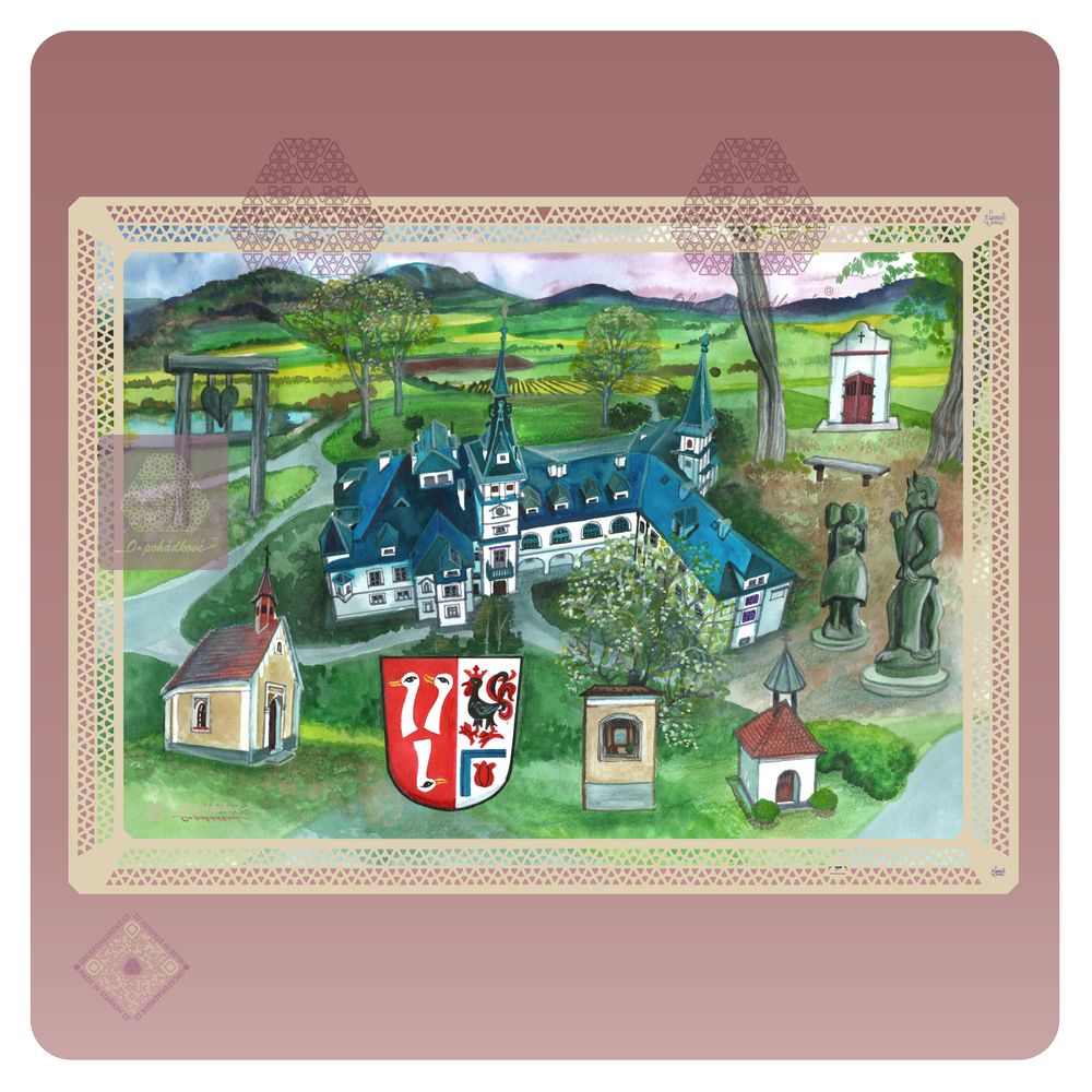 cz  psč 33454 Lužany Josef Hlávka zámek zámecký mlýn Antonín Dvořák |  dárky upomínkové předměty ornamenty malba akvarel umění zelená modrá hnědá béžová doplňky stolování  kreativita obraz  krajina památky pamětihodnosti tradice  sběratelské  suvenýry Bohemiaris