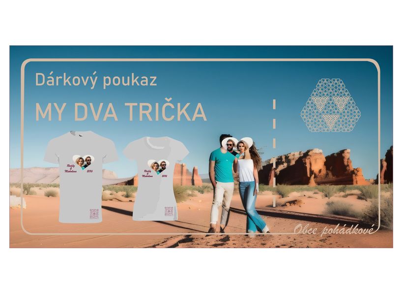 Poukaz MY DVA TRIČKA na trička ve vlastním designu. Hodí se pro dvojici přátel, partnery,  pro významnou příležitost páru, pro páníčka a jeho psa (dětské tričko) atd.  Poukazy na trička jsou výhodné, protože v ceně zahrnují kromě materiálu triček a potiskových prací i individualizované grafické zpracování a konzultaci s grafikem - přizpůsobení designu potisku na míru. Můžete si do potisku nechat doplnit jméno, přezdívku, slogan, vzkaz či kontakt zakódovaný v QR kódu a vše Vám na míru graficky zpracujeme.
