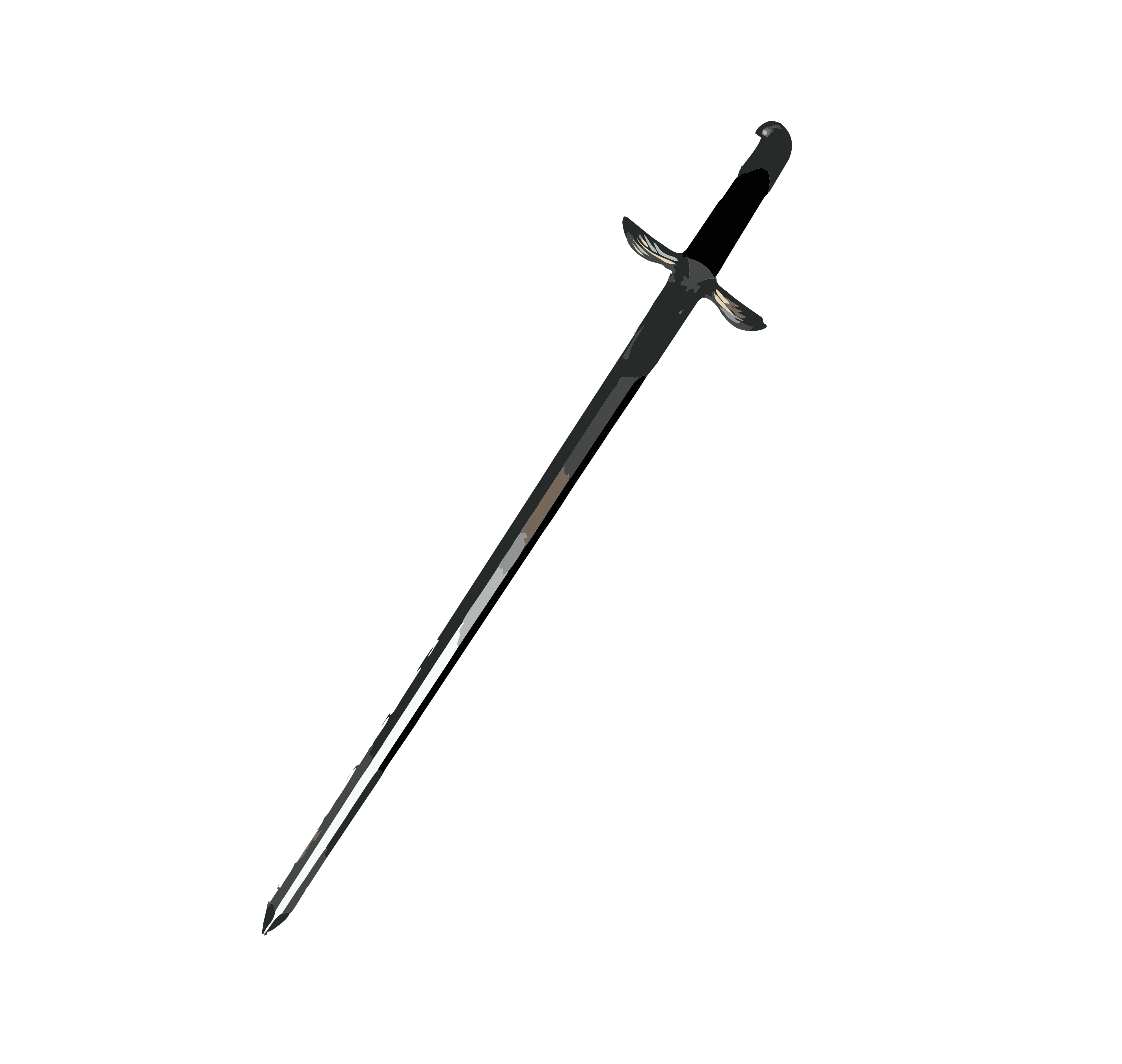 Měkčený meč z "falešné oceli". Detailně zpracovaná zbraň, vztužené jádro z laminátu, tělo z PU pěny a detailně lakovaný latexovým povrchem.