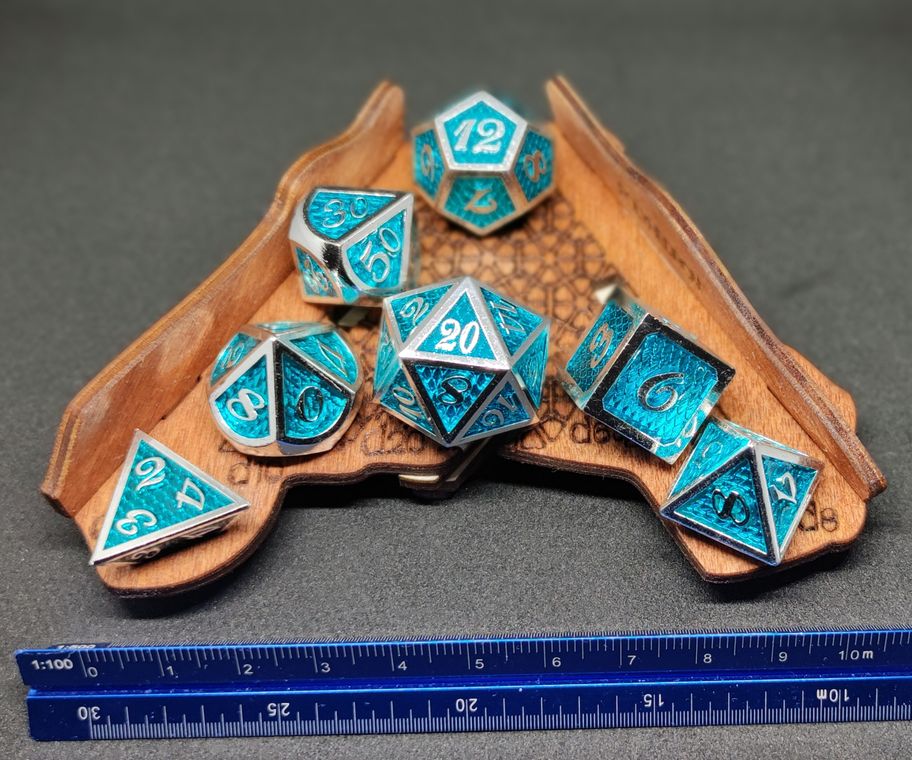 Sada 7 kusů mnohastěnných kostek pro hraní Her na hrdiny. Kovové.