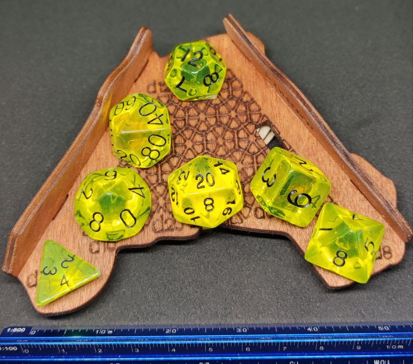 Sada 7 různých mnohastěnných kostek pro hraní her na hrdiny. Plastové. Jednobarevné - transparentní.