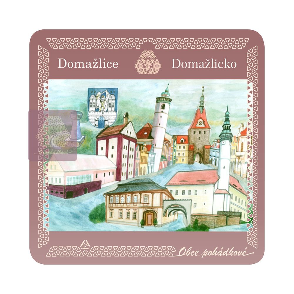 Exkluzivní sada nápojových podtácků 93 mm x 93 mm. Tácky z edice Obce Pohádkové tvoří ucelenou a stále doplňovanou sbírku s ilustrovanými motivy obcí z Čech.
