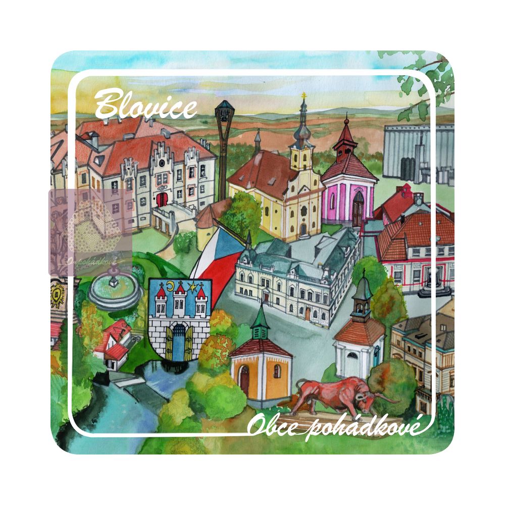 Exkluzivní sada nápojových podtácků 93 mm x 93 mm. Tácky z edice Obce Pohádkové tvoří ucelenou a stále doplňovanou sbírku s ilustrovanými motivy obcí z Čech.