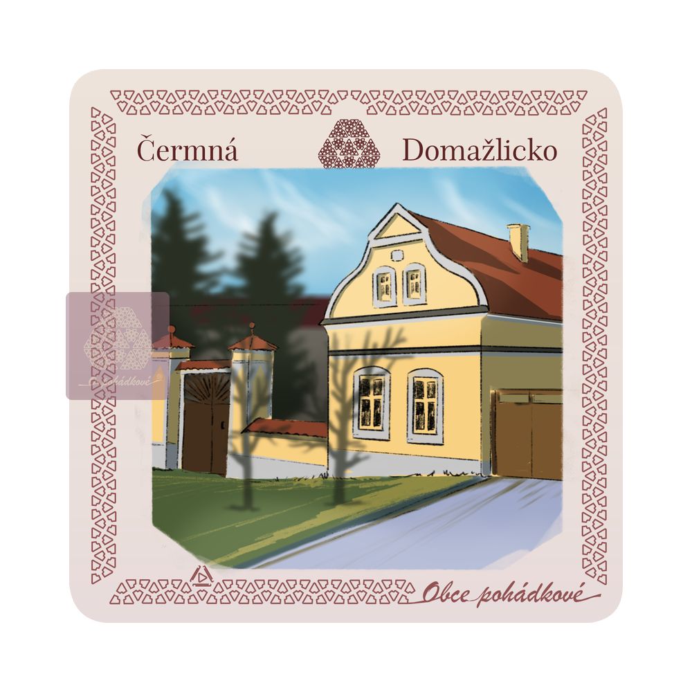 Exkluzivní sada nápojových podtácků 93 mm x 93 mm. Tácky z edice Obce Pohádkové tvoří ucelenou a stále doplňovanou sbírku s ilustrovanými motivy obcí z Čech.