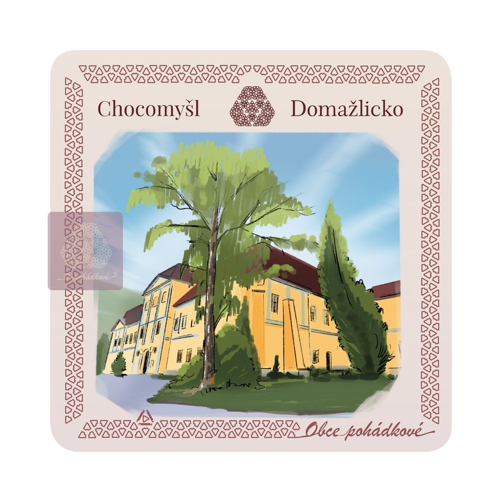 Exkluzivní sada nápojových podtácků 93 mm x 93 mm. Tácky z edice Obce Pohádkové tvoří ucelenou a stále doplňovanou sbírku s ilustrovanými motivy obcí z Čech.