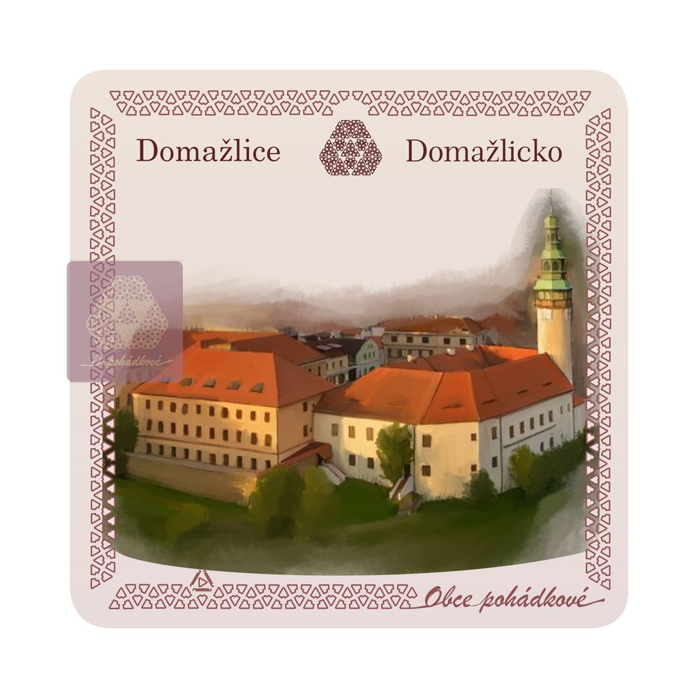 Exkluzivní sada nápojových podtácků 93 mm x 93 mm. Tácky z edice Obce Pohádkové tvoří ucelenou a stále doplňovanou sbírku s ilustrovanými motivy obcí z Čech.