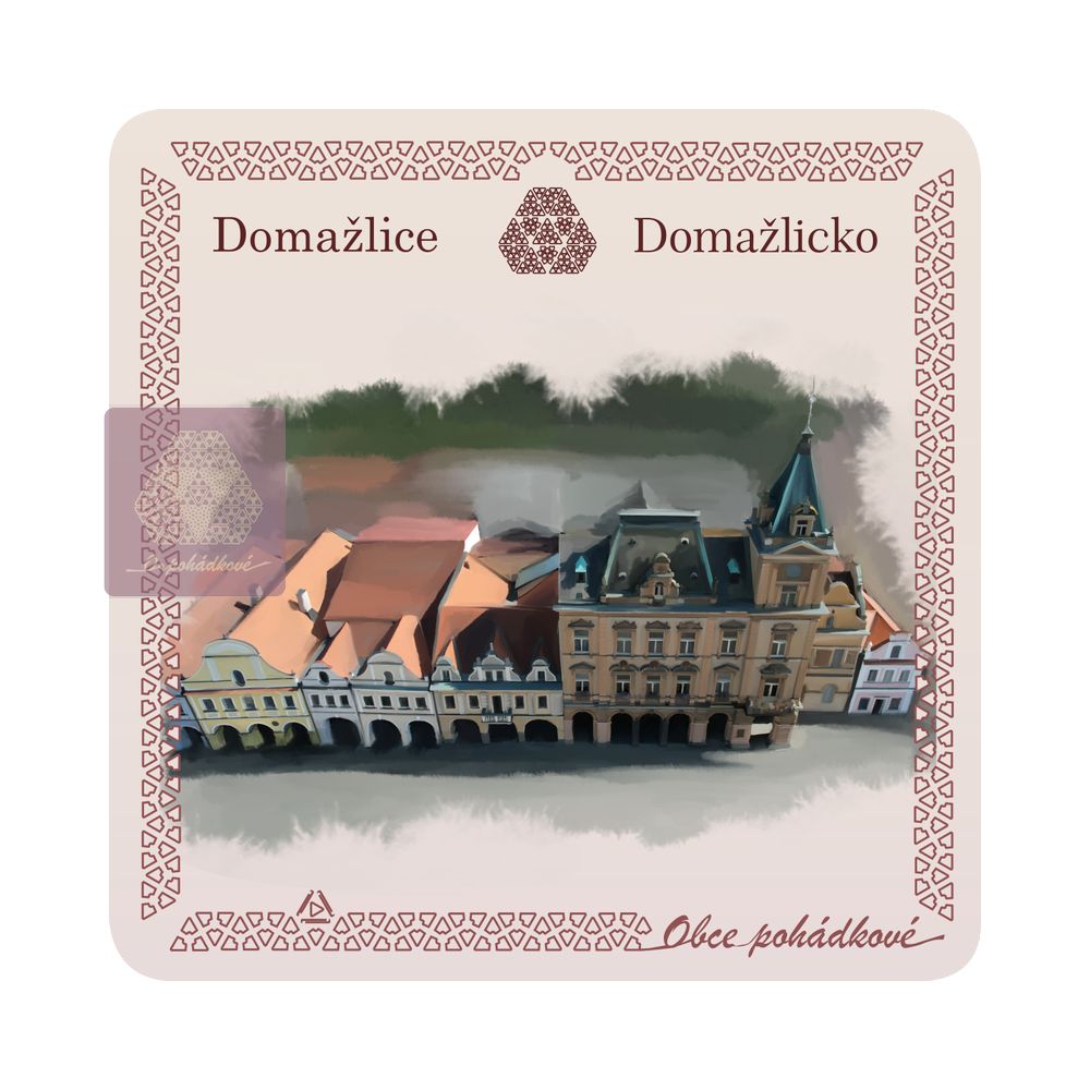 Exkluzivní sada nápojových podtácků 93 mm x 93 mm. Tácky z edice Obce Pohádkové tvoří ucelenou a stále doplňovanou sbírku s ilustrovanými motivy obcí z Čech.
