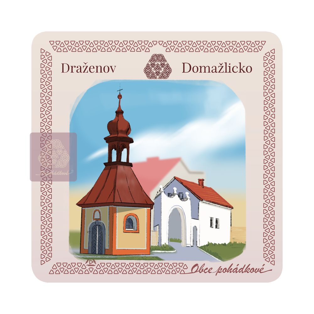 Exkluzivní sada nápojových podtácků 93 mm x 93 mm. Tácky z edice Obce Pohádkové tvoří ucelenou a stále doplňovanou sbírku s ilustrovanými motivy obcí z Čech.