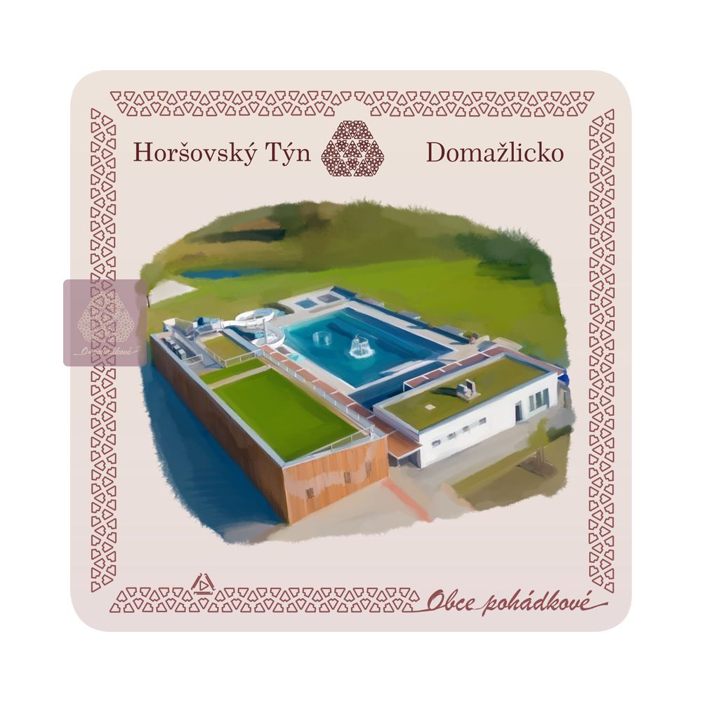 Exkluzivní sada nápojových podtácků 93 mm x 93 mm. Tácky z edice Obce Pohádkové tvoří ucelenou a stále doplňovanou sbírku s ilustrovanými motivy obcí z Čech.