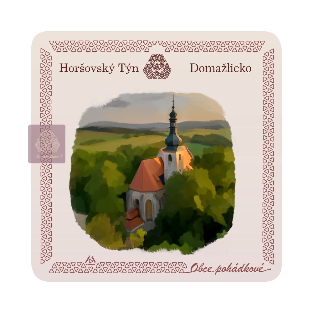 cz  psč 34601 české czechia čr plzeňsko kraj domažlicko hrad a zámek horšovský týn kostel sv. Anny kostel sv. Petra a Pavla  dárky upomínkové předměty ornamenty malba akvarel umění zelená modrá hnědá béžová doplňky stolování  kreativita obraz  krajina památky pamětihodnosti tradice  sběratelské suvenýry