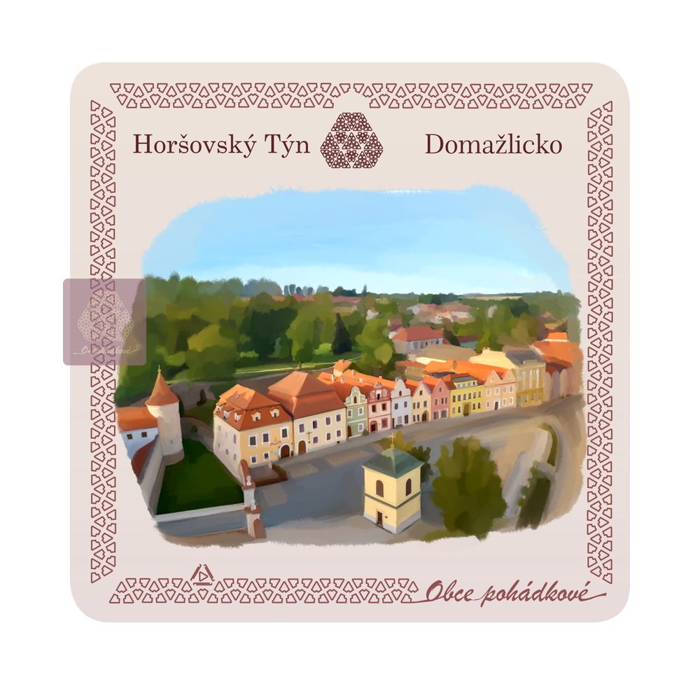 cz  psč 34601 české czechia čr plzeňsko kraj domažlicko hrad a zámek horšovský týn kostel sv. Anny kostel sv. Petra a Pavla  dárky upomínkové předměty ornamenty malba akvarel umění zelená modrá hnědá béžová doplňky stolování  kreativita obraz  krajina památky pamětihodnosti tradice  sběratelské suvenýry