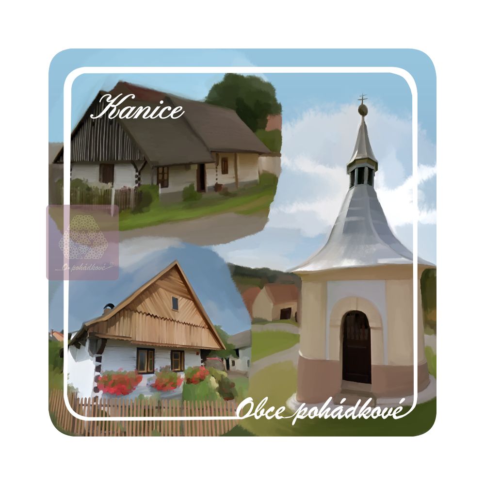 Exkluzivní sada nápojových podtácků 93 mm x 93 mm. Tácky z edice Obce Pohádkové tvoří ucelenou a stále doplňovanou sbírku s ilustrovanými motivy obcí z Čech.