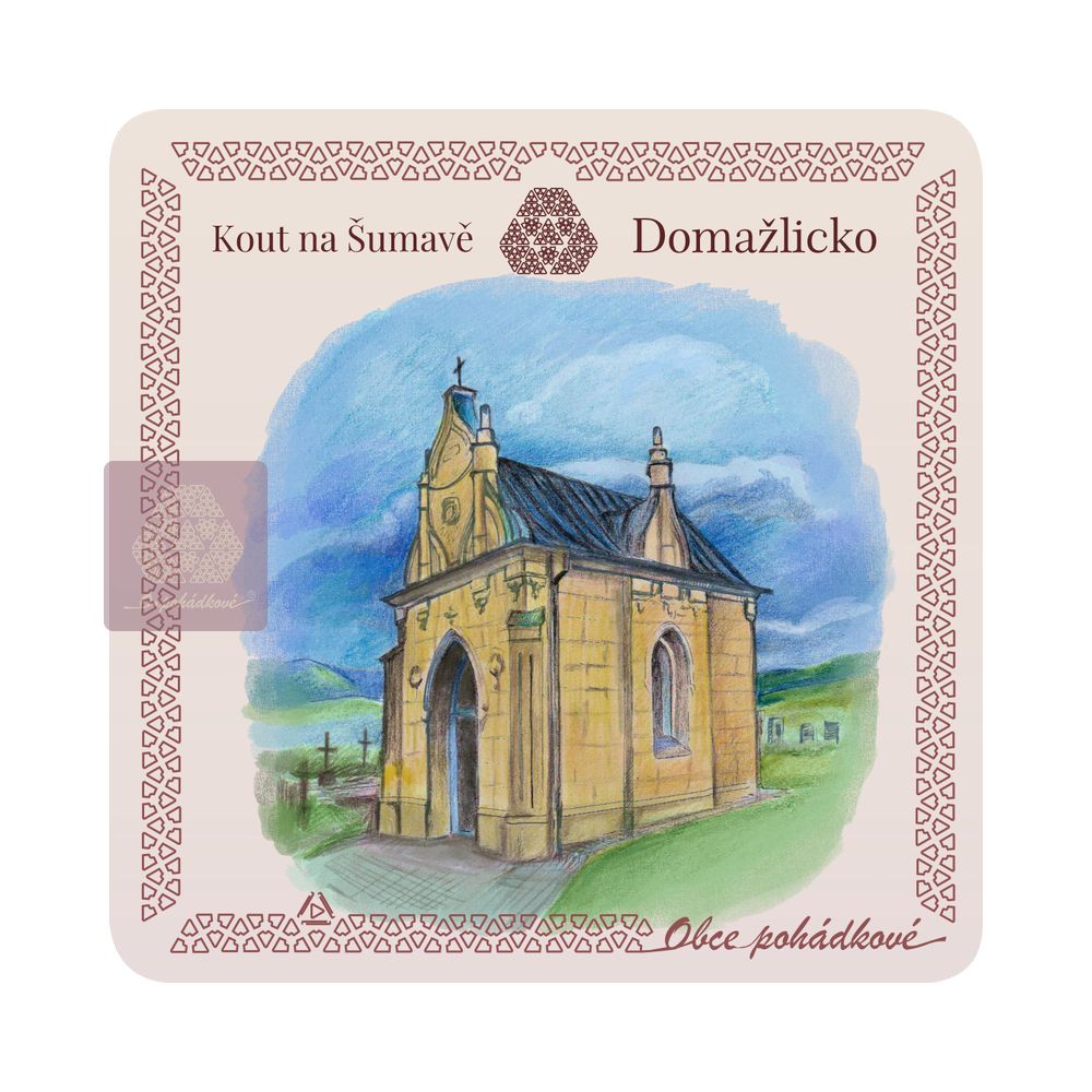 Exkluzivní sada nápojových podtácků 93 mm x 93 mm. Tácky z edice Obce Pohádkové tvoří ucelenou a stále doplňovanou sbírku s ilustrovanými motivy obcí z Čech.