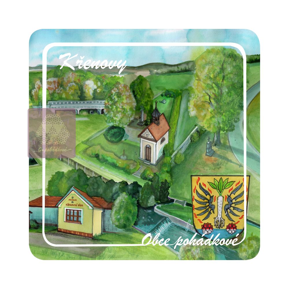 Exkluzivní sada nápojových podtácků 93 mm x 93 mm. Tácky z edice Obce Pohádkové tvoří ucelenou a stále doplňovanou sbírku s ilustrovanými motivy obcí z Čech.