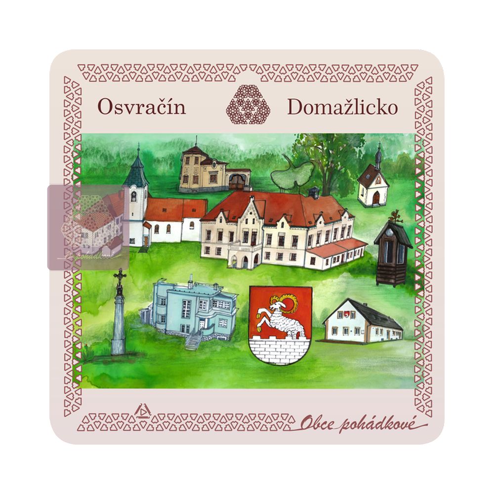 Exkluzivní sada nápojových podtácků 93 mm x 93 mm. Tácky z edice Obce Pohádkové tvoří ucelenou a stále doplňovanou sbírku s ilustrovanými motivy obcí z Čech.