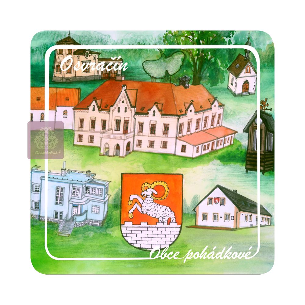 Exkluzivní sada nápojových podtácků 93 mm x 93 mm. Tácky z edice Obce Pohádkové tvoří ucelenou a stále doplňovanou sbírku s ilustrovanými motivy obcí z Čech.
