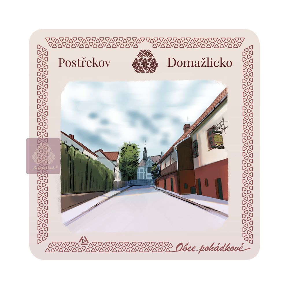 Exkluzivní sada nápojových podtácků 93 mm x 93 mm. Tácky z edice Obce Pohádkové tvoří ucelenou a stále doplňovanou sbírku s ilustrovanými motivy obcí z Čech.