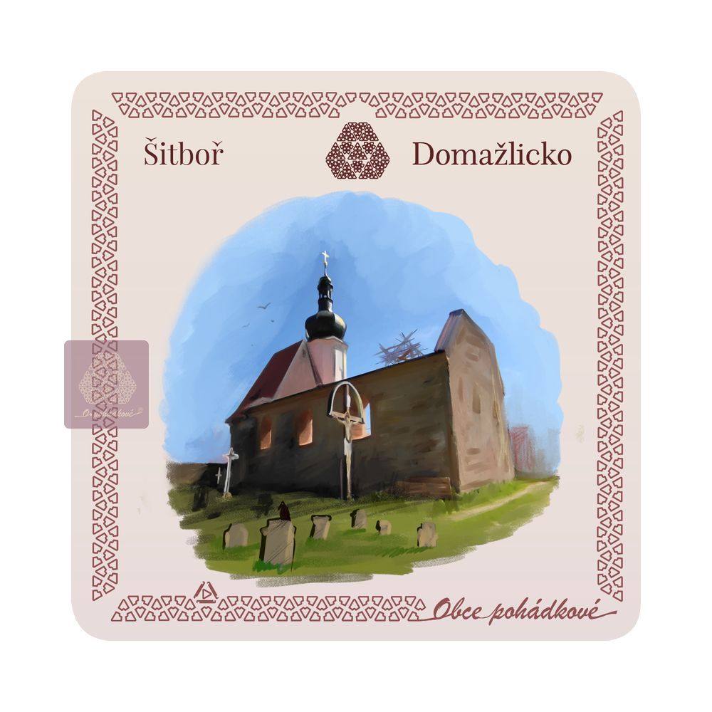 cz  psč 34522 české  czechia čr plzeňsko kraj domažlicko kostel sv. Mikuláše sochy  |  dárky upomínkové předměty ornamenty malba akvarel umění zelená modrá hnědá béžová doplňky stolování  kreativita obraz  krajina památky pamětihodnosti tradice  sběratelské  suvenýry Bohemiaris