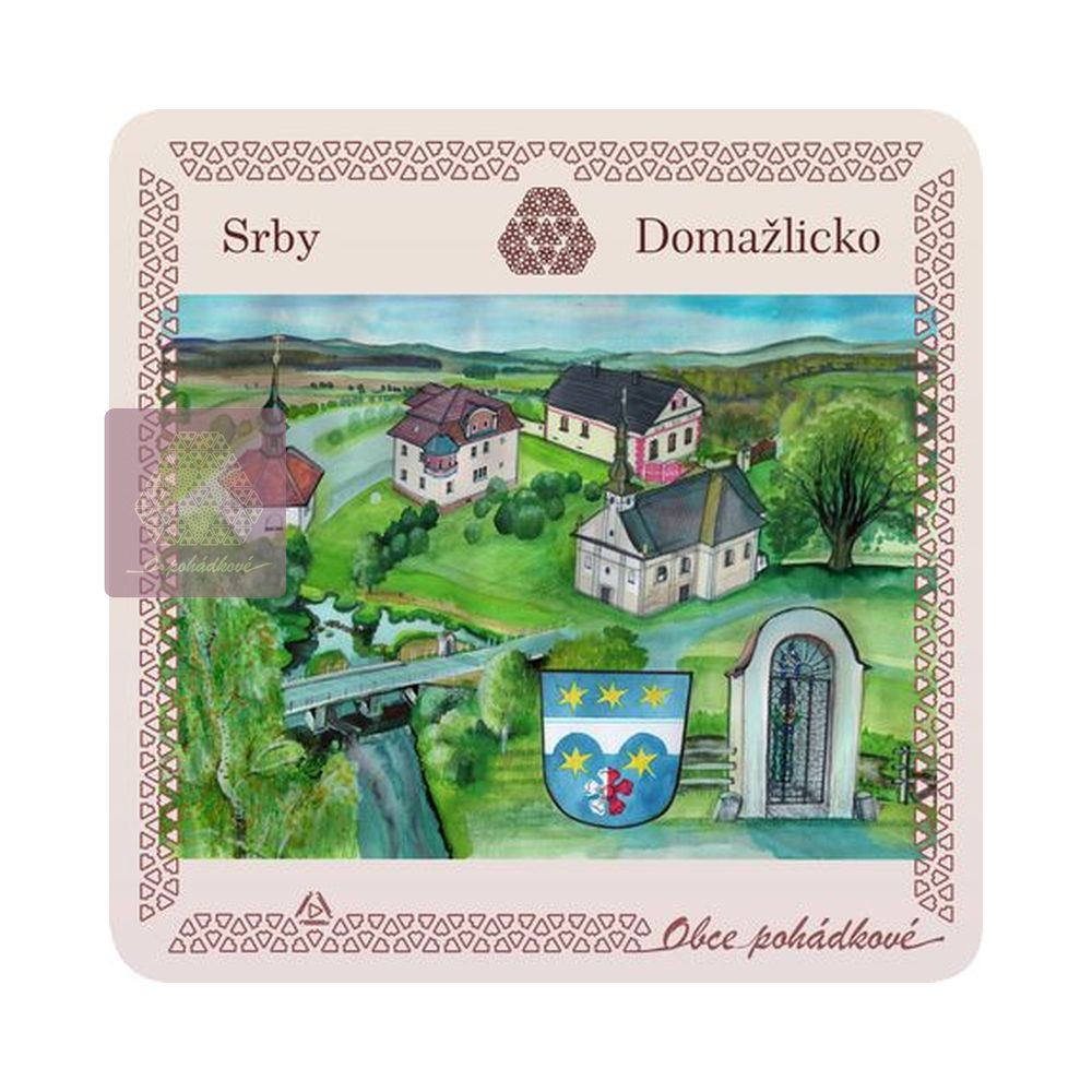 Exkluzivní sada nápojových podtácků 93 mm x 93 mm. Tácky z edice Obce Pohádkové tvoří ucelenou a stále doplňovanou sbírku s ilustrovanými motivy obcí z Čech.