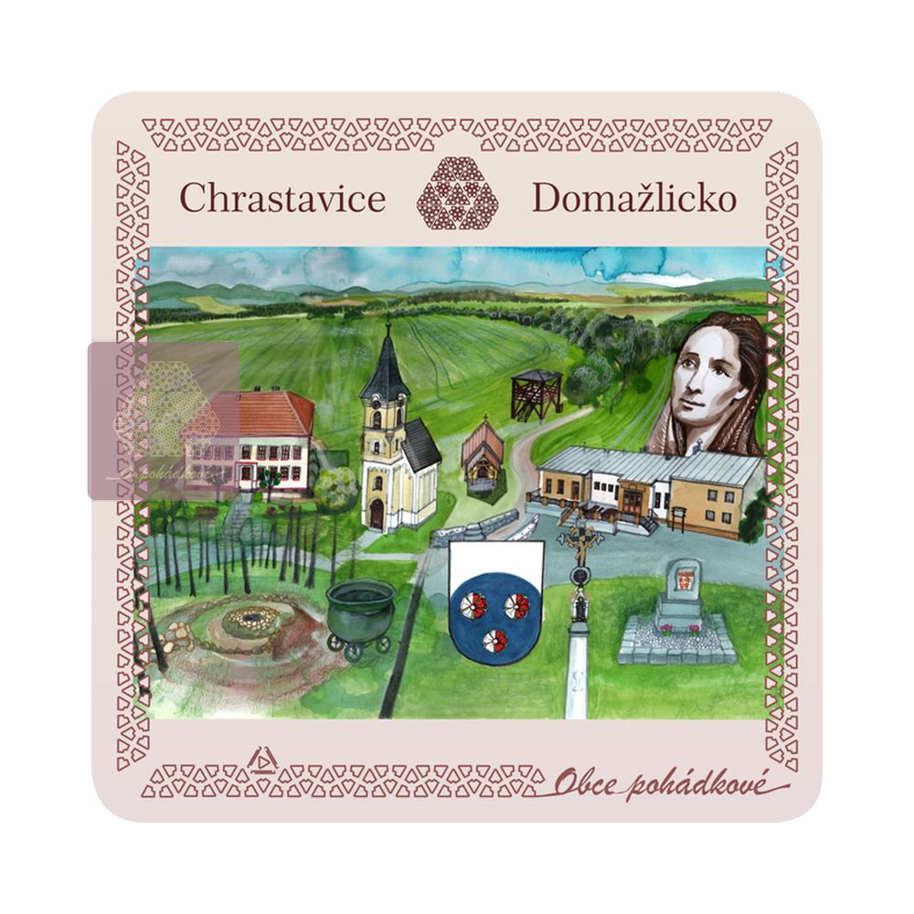 Exkluzivní sada nápojových podtácků 93 mm x 93 mm. Tácky z edice Obce Pohádkové tvoří ucelenou a stále doplňovanou sbírku s ilustrovanými motivy obcí z Čech.