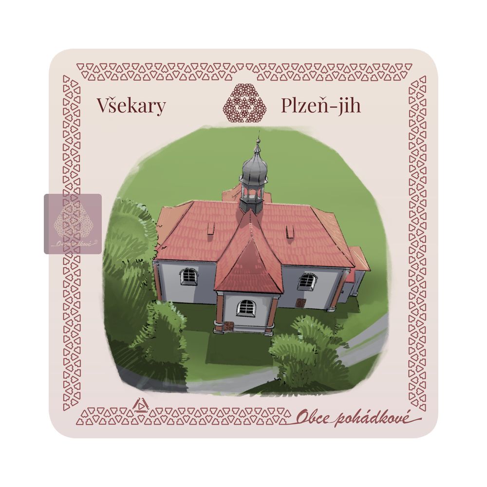 Exkluzivní sada nápojových podtácků 93 mm x 93 mm. Tácky z edice Obce Pohádkové tvoří ucelenou a stále doplňovanou sbírku s ilustrovanými motivy obcí z Čech.